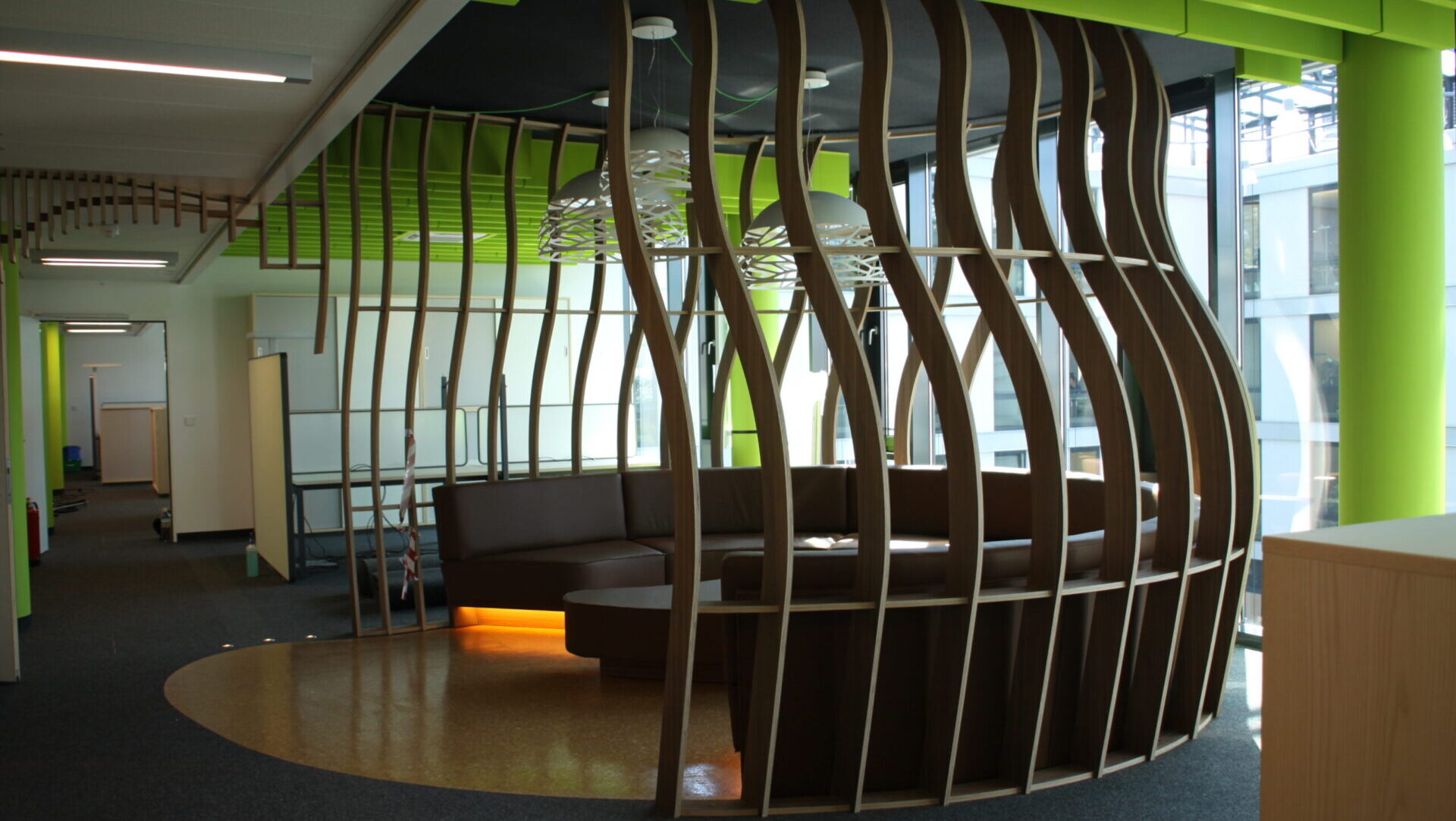 Für Büro- und Gewerbeobjekte entstehen individuelle Einbauten – darunter Empfangstheken, Einbaumöbel, Akustikelemente und funktionale Sonderlösungen. Gestaltung, Materialwahl und technische Details werden im Abgleich mit Nutzung und Architektur entwickelt.
